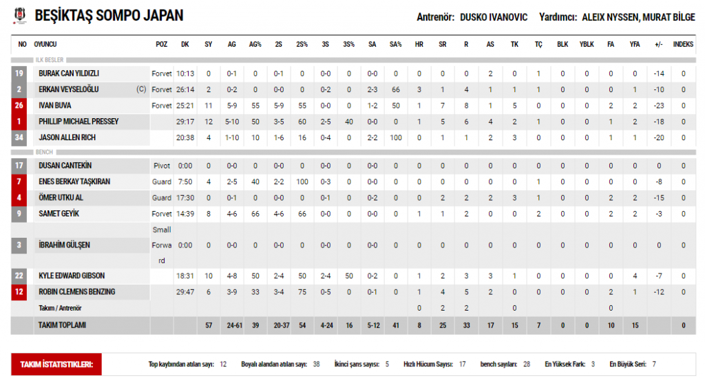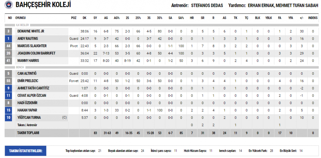 Beşiktaş haftaiçi Bayreuth karşısında dağılırken aslında ne kadar kırılgan bir takım olduklarını ve Pressey ile Gibson’ın verimliliklerinin geçici olabileceğini net olarak görmüştük. Bu maçta da tıpkı Bayreuth gibi karşılarında formda ve agresif bir takım gördüler. Bahçeşehir Koleji yeni transferi Colom ve Emir liderliğinde oyunu iyi organize ederken White başta olmak üzere takım olarak yay gerisinden de çok yüzdeli atarak Beşiktaş’ın direncini tamamen kırdılar. Ayrıca yeni transfer Harris gayet iyi iş çıkardı, oyunun her alanında takıma çok değerli katkılar verdi. Daha ilk yarıda havlu atan Beşiktaş, ikinci yarıda da kendine gelemedi ve maça ortak olabilmek adına açıkçası çaba bile göstermedi. Bahçeşehir sezonun en rahat galibiyetlerinden birine imza attı.