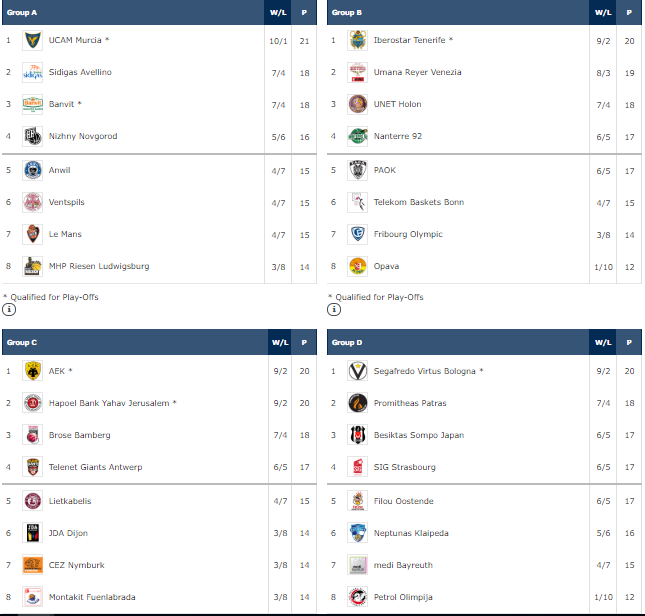 FIBA Şampiyonlar Ligi 11.Haftanın Genel Görünümü